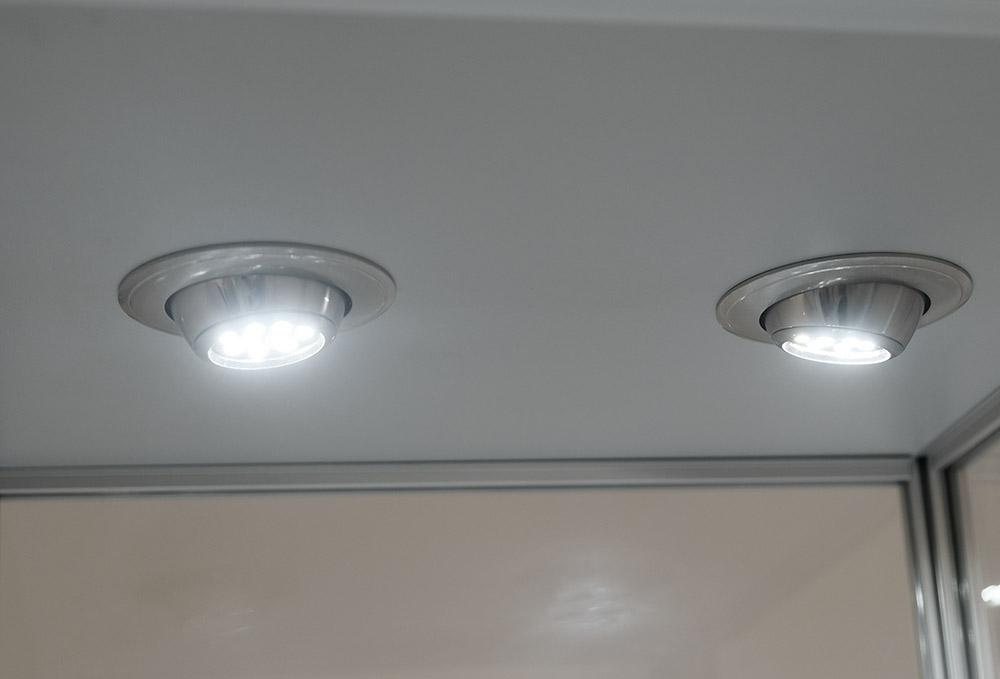 - Lights 1 Led Bulb lights under each shelf