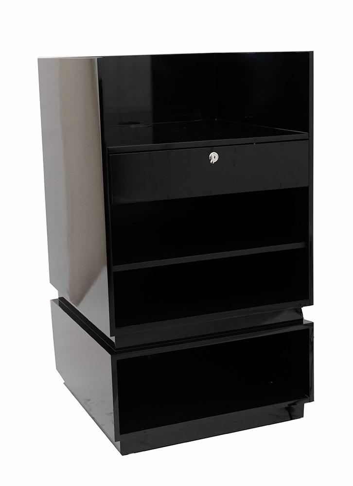 Cabinet 600X600X1050mm Till Counter High Quality Glossy Black Painted Finish With One Drawer And Adjustable Shelf. Lights Fitted In The Groove.